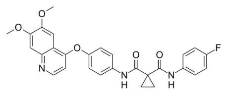 cabozantinib是一种多激酶抑制剂,通过靶向抑制MET、VEGFR2、RET等信号通路而发挥抗肿瘤作用,能够杀死肿瘤细胞,减少转移并抑制血管生成。cabozantinib胶囊剂已以品牌名Cometriq上市销售,治疗转移性甲状腺髓样癌(MTC)。cabozantinib片剂已以品牌名Cabometyx销售,治疗VEGF靶向疗法治疗失败的晚期肾细胞癌(RCC)。