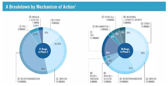 2018年AD药物研发管线作用机制分类(图片来源:参考资料[3])