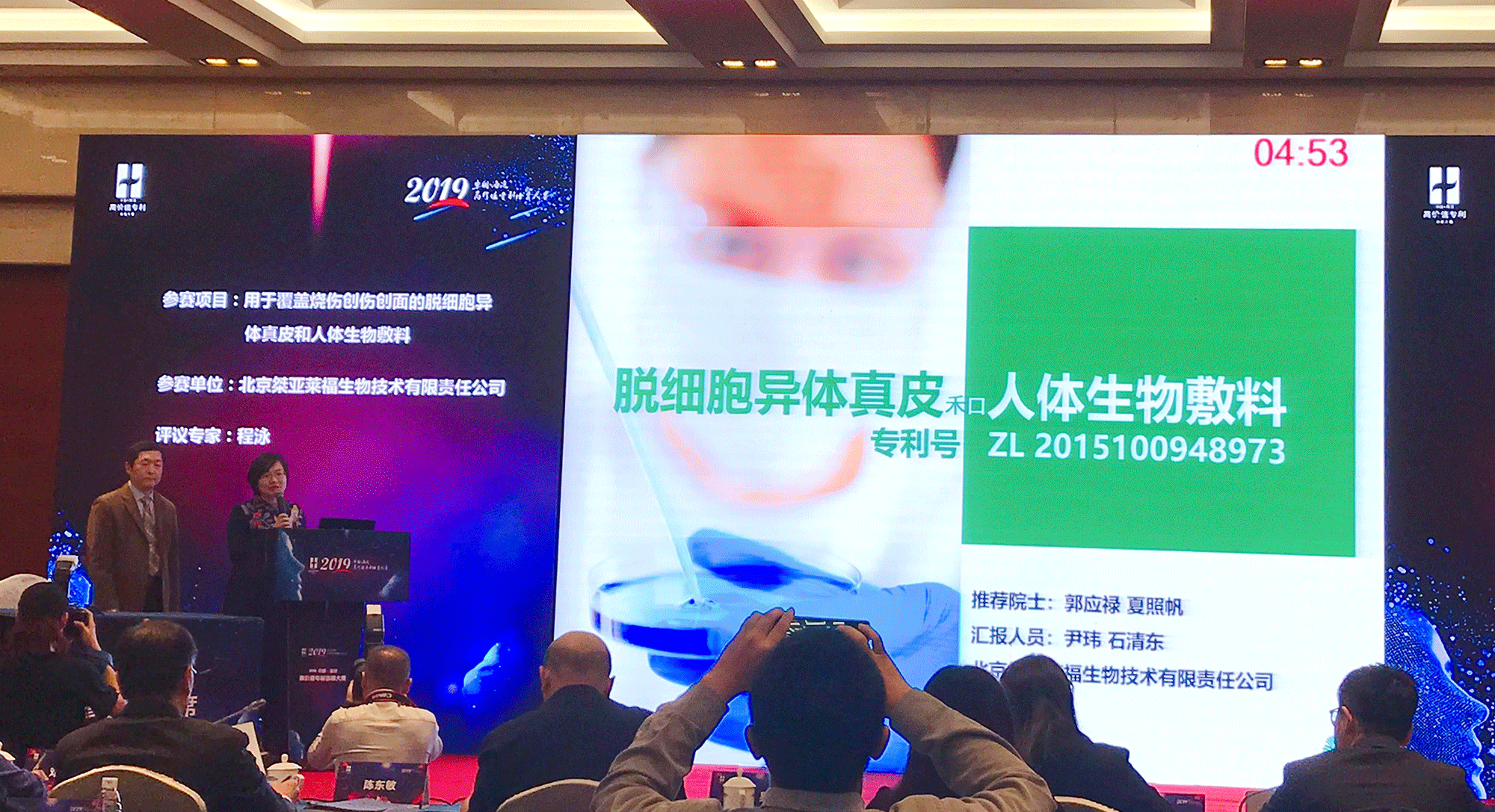 北京桀亚莱福副总经理石清东表示:“桀亚莱福是一家在软组织修复、生物组织工程领域研发、生产、销售为一体的高新技术企业,通过GMP认证、ISO13485、ISO9001认证,拥有完备的研发、生产、销售、公益系统。公司邀请一批顶尖专家担任战略顾问、组成“专家智库,包括中国工程院吴阶平院士、郭应禄院士、夏照帆院士,以及中山大学附属第一医院朱家源教授、国内知名烧伤整形专家王春元教授等百余位业内著名专家、学者。公司成立二十余年,领导层高瞻远瞩,员工弘扬工匠精神,致力于再生医学和组织工程学技术的发展,探索技术创新与材料创新双路径,打造高价值专利组合,脱细胞异体真皮和人体生物敷料等产品成为中国自主专利技术生产的生物组织工程材料,在临床广泛使用。几个月以来,我们认真筹备及参加各环节比赛,通过展示、交流,向全社会宣传推广了桀亚莱福的品牌形象以及高价值专利培育的方法、经验和理念;同时,学到了兄弟单位的经验,找到了差距,更进一步把握准了未来的发展方向。未来,我们将针对政府领导和行业专家提出做好高价值专利组合布局的建议,从应用和设备两个方面进一步进行专利挖掘和申请,以及布局海外市场。”