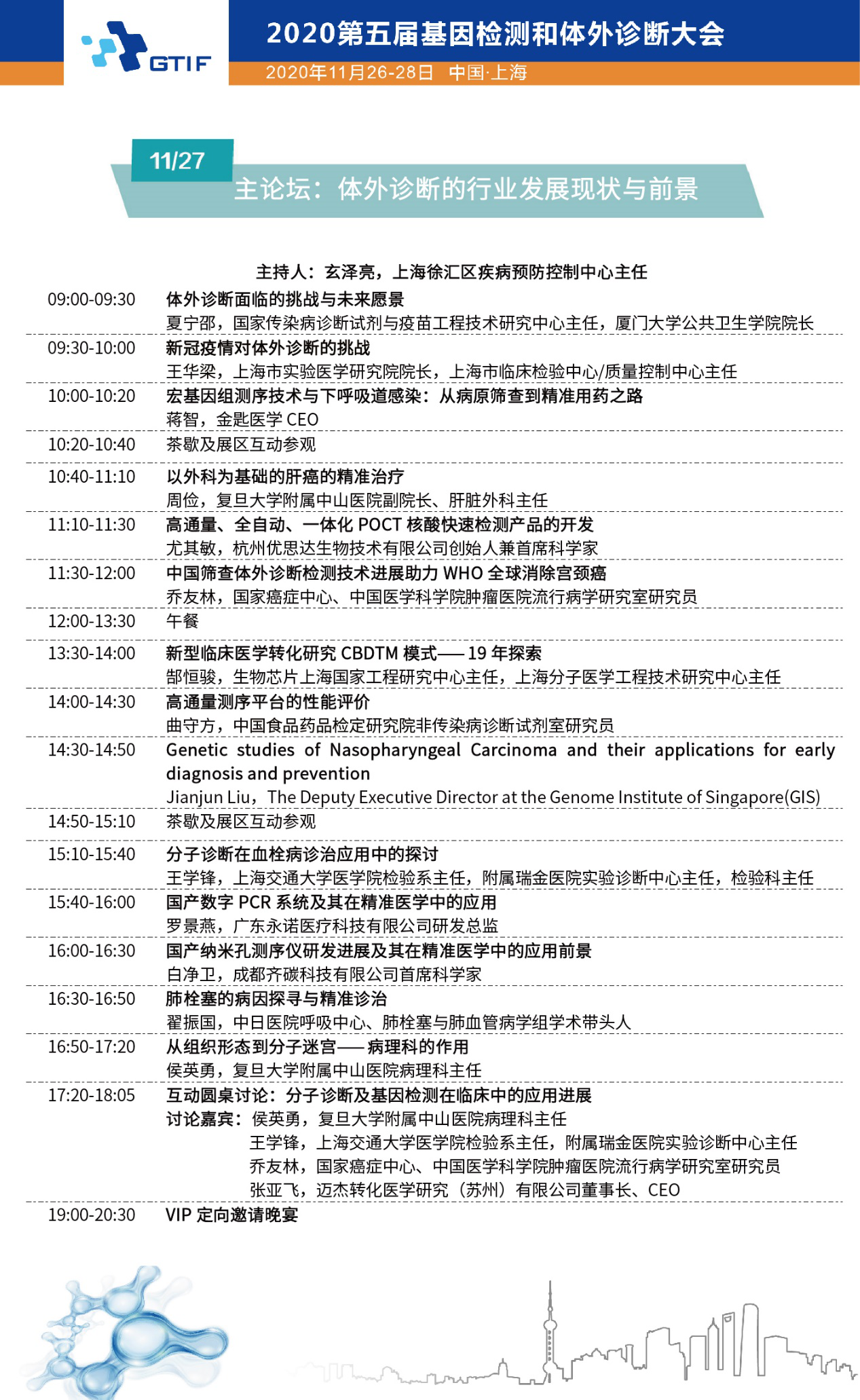 在精准医疗领域同仁的支持下,由万怡医学主办的全球精准医疗(中国)峰会迎来第五个年头,第五届全球精准医疗(中国)峰会将于2020年11月26-28日在上海三甲港绿地国际会议中心盛大召开!大会历时三日,同期举办精准医疗开幕式论坛、第五届基因检测和体外诊断大会、第五届细胞治疗产业创新大会,规模再次扩大,盛邀1000+行业专家参与大会,期待您的莅临!