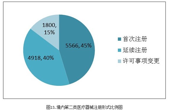2015年,各省级食品药品监管部门共批准境内第二类医疗器械注册12284项。其中首次注册5566项,延续注册4918项,许可事项变更注册1800项。
